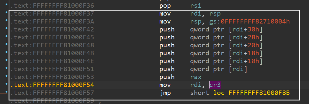 , started from the mov rdi, rsp; mov rsp,gs: