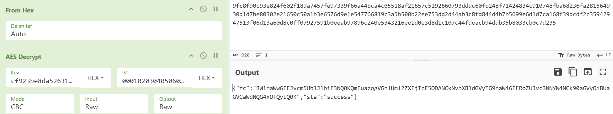 1 | cipher = bytes.fromhex('e4b8058f06f7061e8f0f8ed15d23865ba2427b23a695d9b27bc308a26d') |